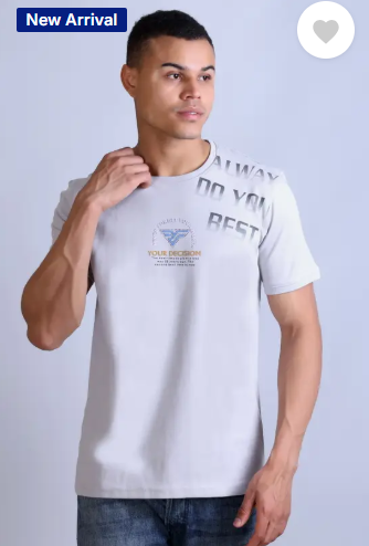 Men Printed Round Neck Cotton Blend Grey T-Shirt