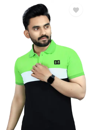 Men Colorblock Polo Neck Polycotton Light Green T-Shirt