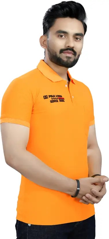 Men Printed Polo Neck Polycotton Yellow T-Shirt