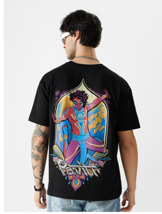Spider-Man Pavitr Prabhakar Printed Pure Cotton Oversized T-Shirt