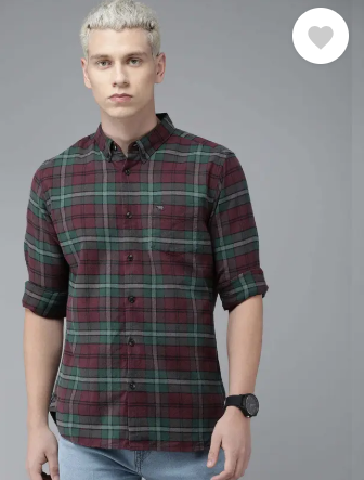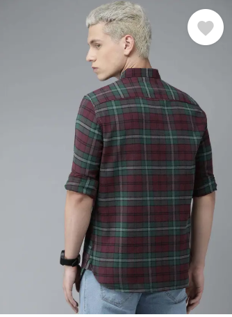 Men Slim Fit Checkered Button Down Collar Casual Shirt