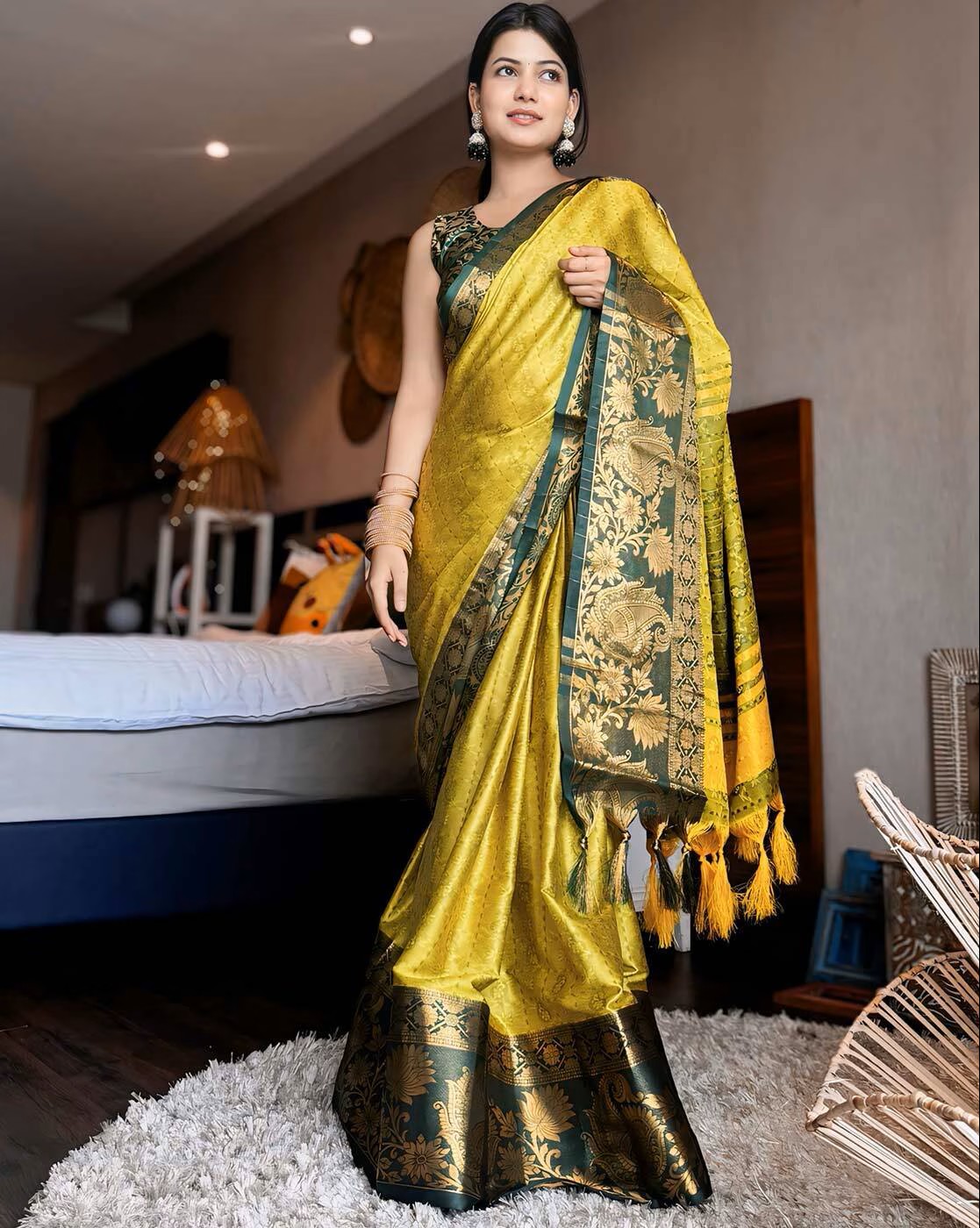 Women Floral Woven Saree with Contrast Border