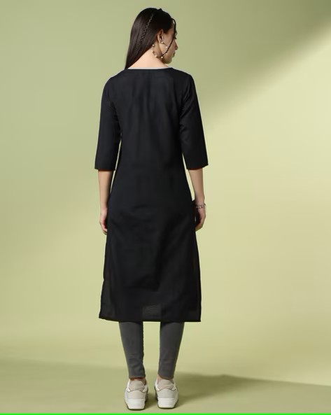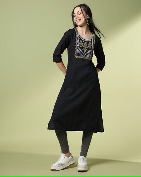 Women Straight Kurta with Embroidered Yoke