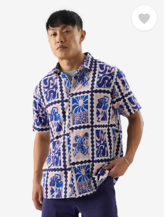 Men Regular Fit Printed Curved Collar Casual Shirt