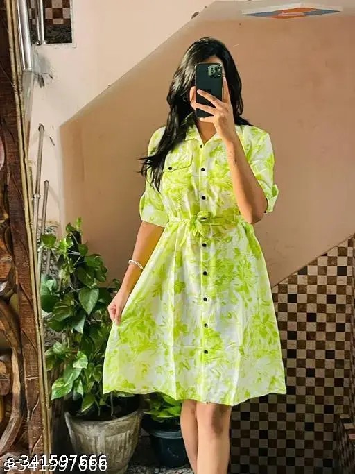 Name : Rkk Collections Womens & Girls A-Line Dress, Casual Wear Printed & Short Sleeve Dress Fabric Cotton In Color Neon