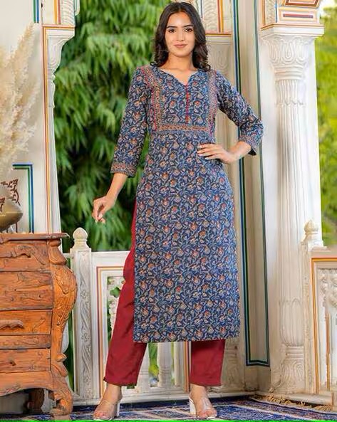 Women Floral Print Straight Kurta