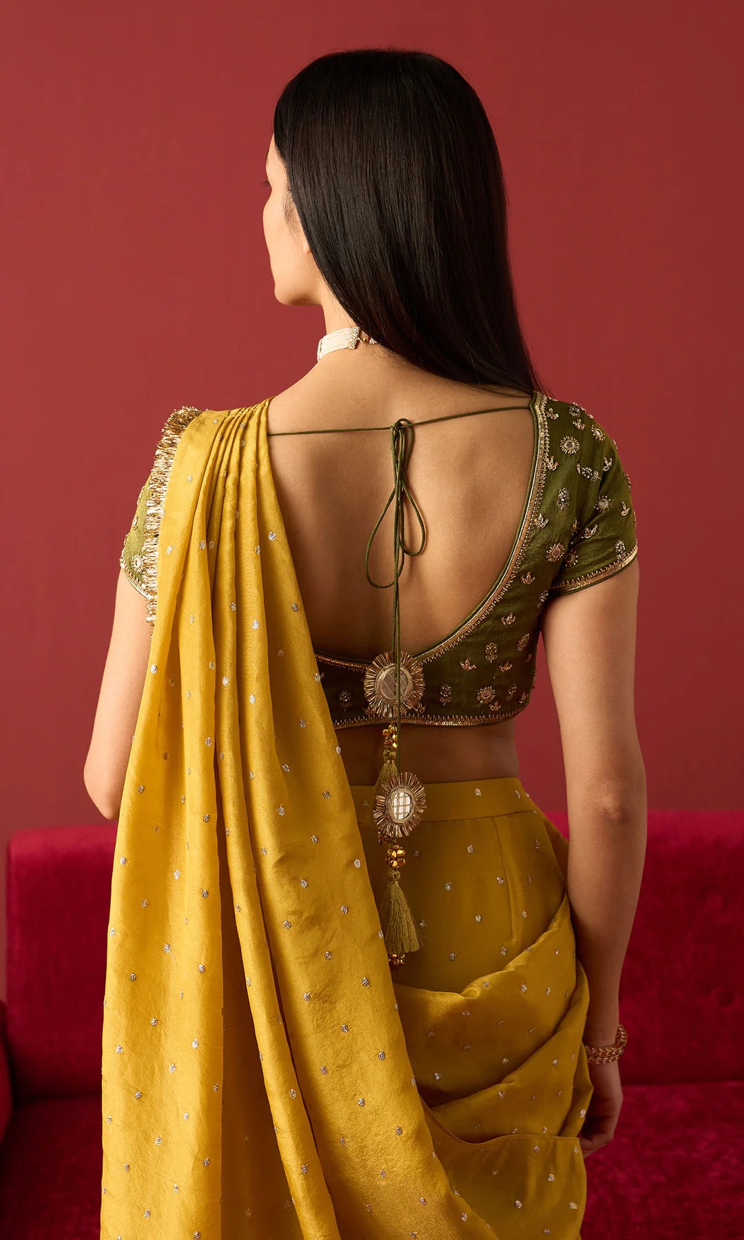 Embroidered Mustard tissue drape saree with blouse ( set of 2)