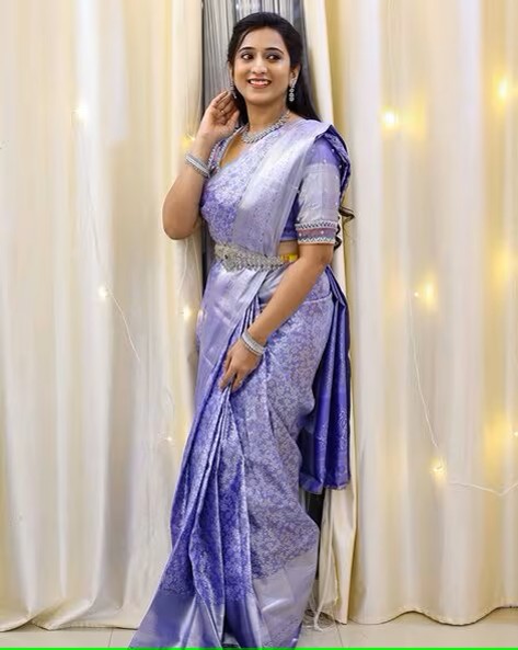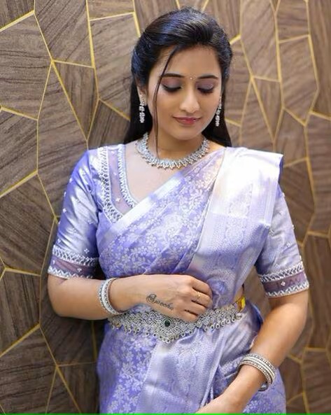 • The last image gives a detailed look of the blouse piece that comes with this saree (The model is wearing a blouse from our in-house wardrobe)