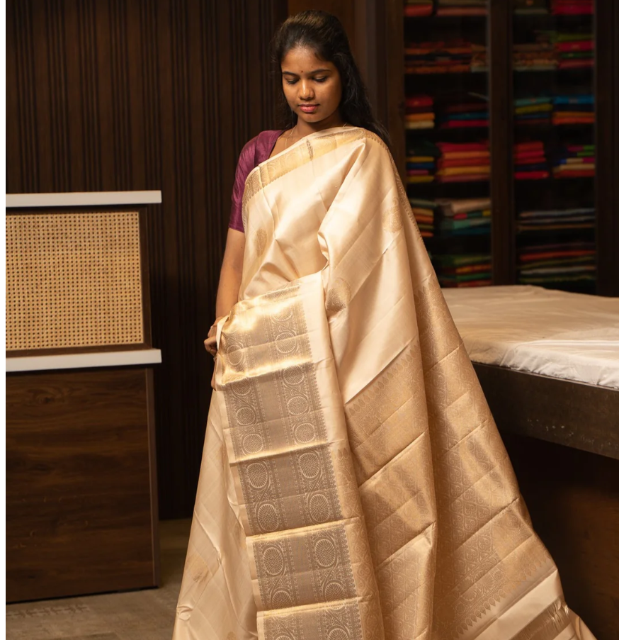 Ivory and Gold Pure Kanchipuram Silk Saree