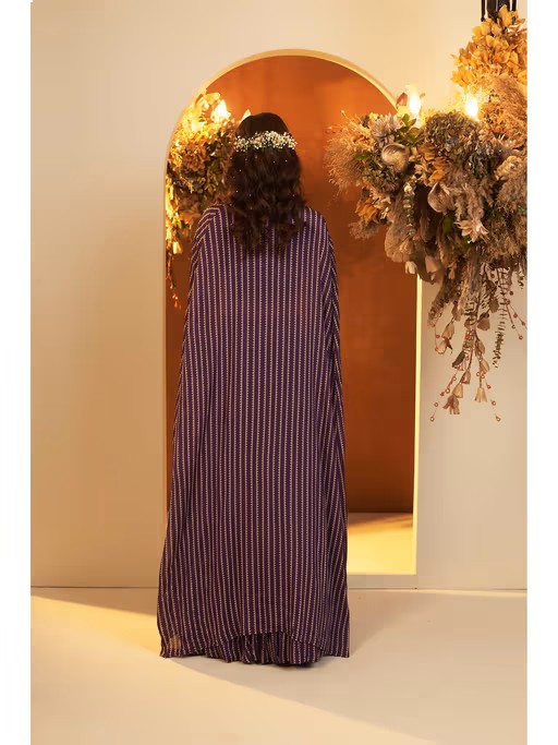 Deep Purple Bandhani Lehenga Set with Cape. The Bouse and Waist Are Fully Embroidered with Cut-Dana, Zari and Sequins.
