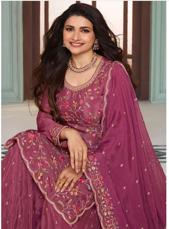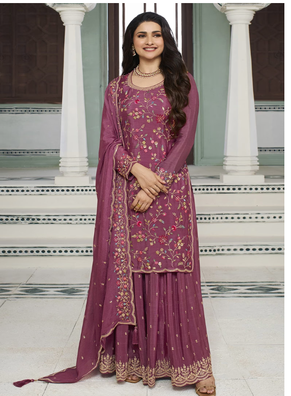 Pink Embroidered Art Silk Sharara Set