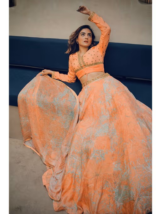 Indulge In The Ethereal Charm Of Our Lehenga Set, Adorned with Delicate Prints-A No-Brainer Choice For Any Occasion.