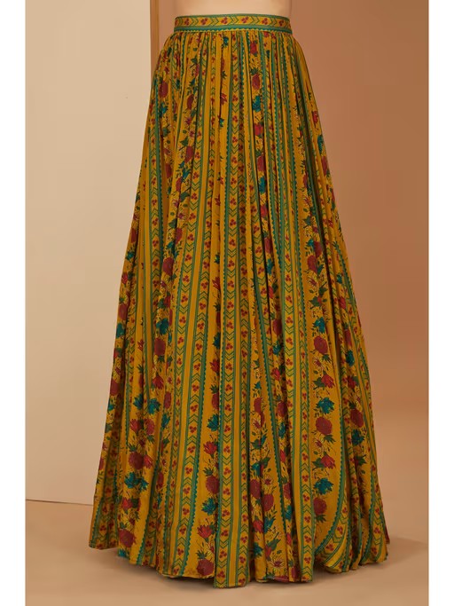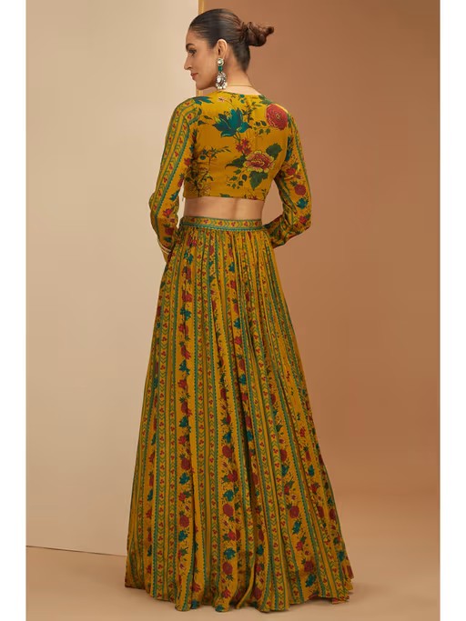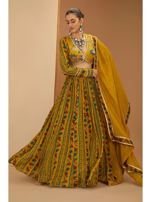 Mustard Printed Lehenga With Zardosi Embroidery Blouse and Dupatta