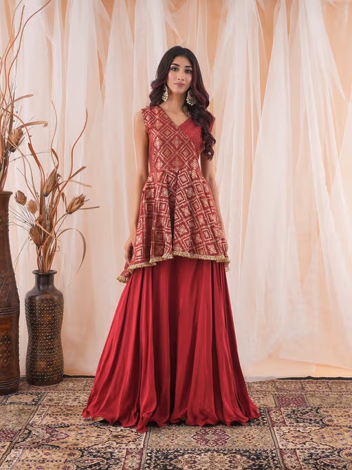 Material Used - Banarasi Brocade For Peplum Top, Crape For Lehenga. Top and Skirt with Attached Lining, Hand Embroidery Of Cut Dana Is On Top