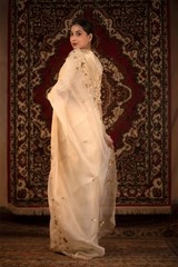• Off White Saree in Organza Silk Fabric