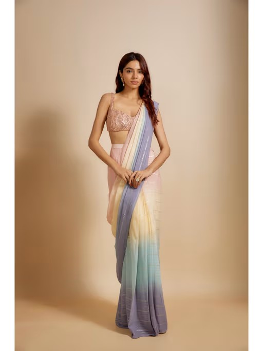 Pink Pre Drape Saree with Stitched Blouse