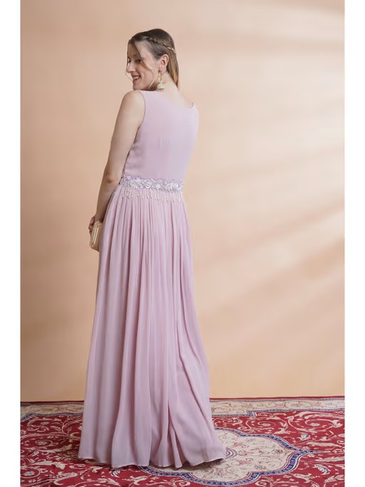 Featuring Mauve Hand Embroidered Georgette Flared Gown