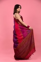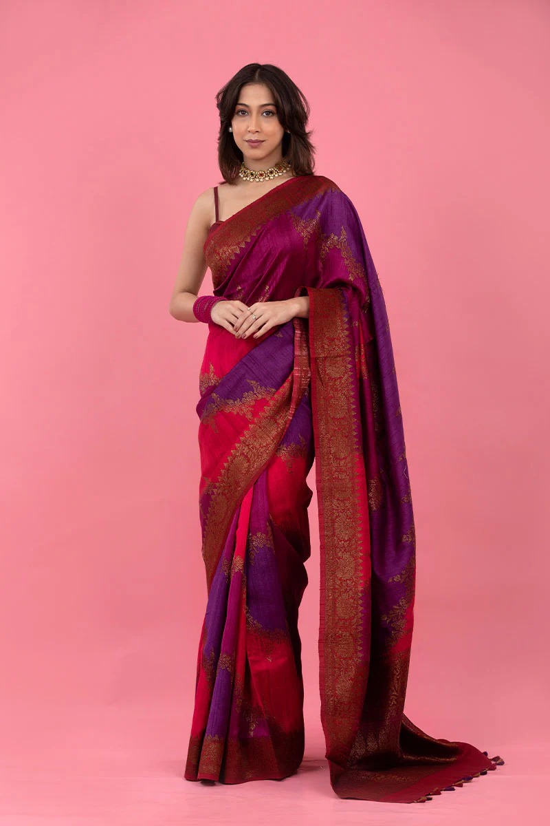Mulberry Pink Rangkat Handwoven Raw Silk Saree