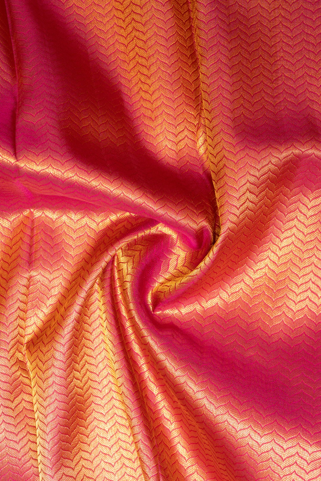 This Maroon Zari Brocade Pure Kanchipuram Silk Saree is the perfect choice for an effortless yet elegant look. Featuring a luxurious traditional design with a magenta korvai border, this saree is ideal for weddings when paired with an embellished blouse. Enjoy a timeless look with this beautiful saree.