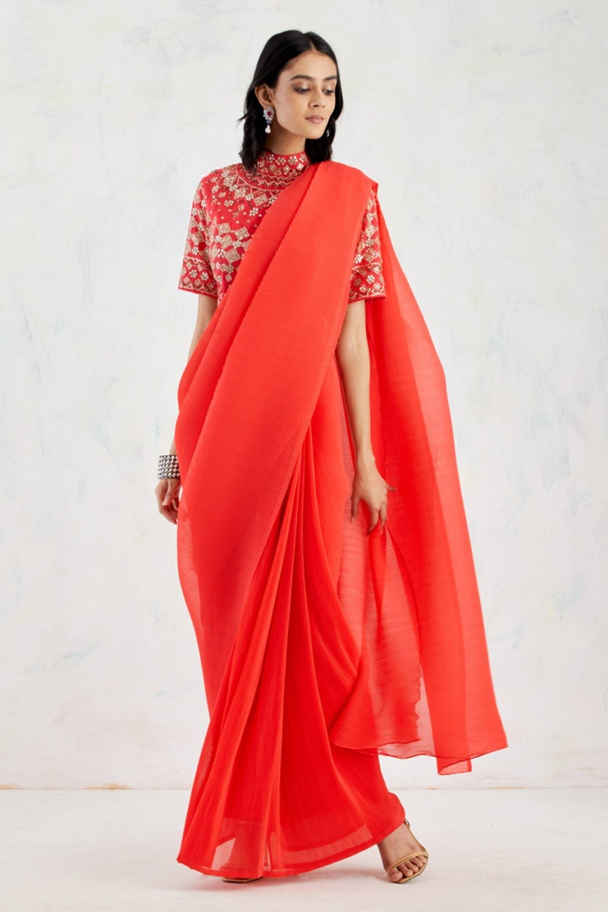 • Vermillion red saree set