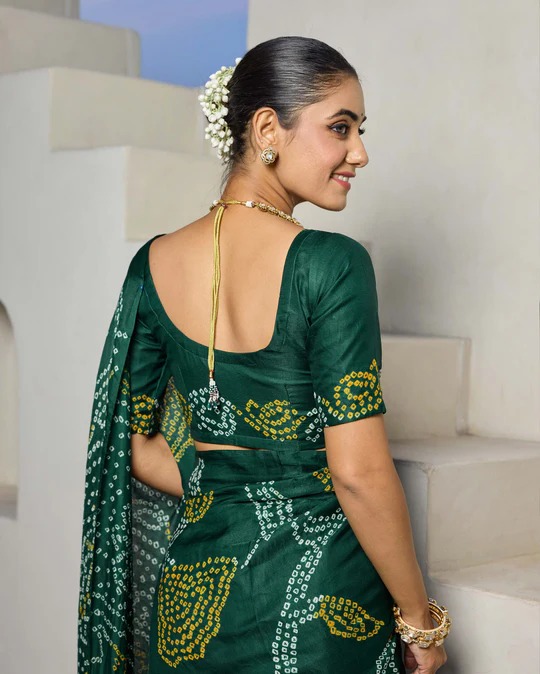 Elegance Bliss Green Silk Bandhani Saree