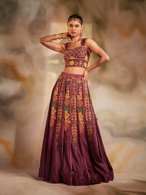 PLUM BEADWORK BUSTIER WITH PLEATED STRAPS
