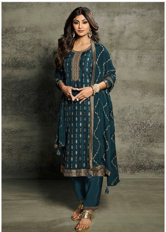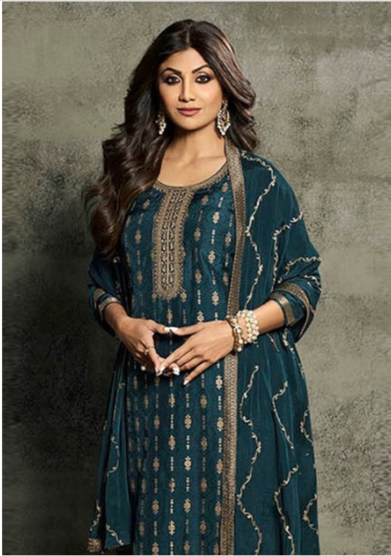 Rama Blue Embroidered Jacquard Silk Kurta Set