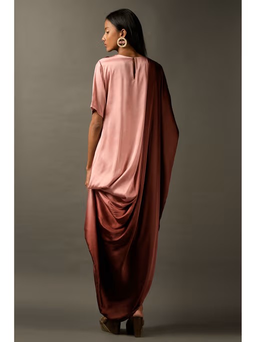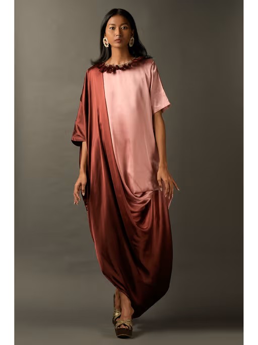 Featuring A Multi-Colored Ombre Kaftan Style Dress In Satin Base With Embroidery.