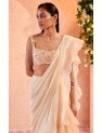 • Dirty ivory net embroidered blouse and chiffon-organza draped ruffle saree and embroidered belt
