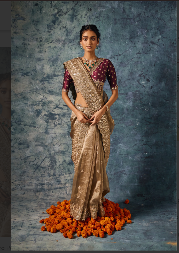 Mouse Color Organza Saree with Gota Patti Embroidery - Adira