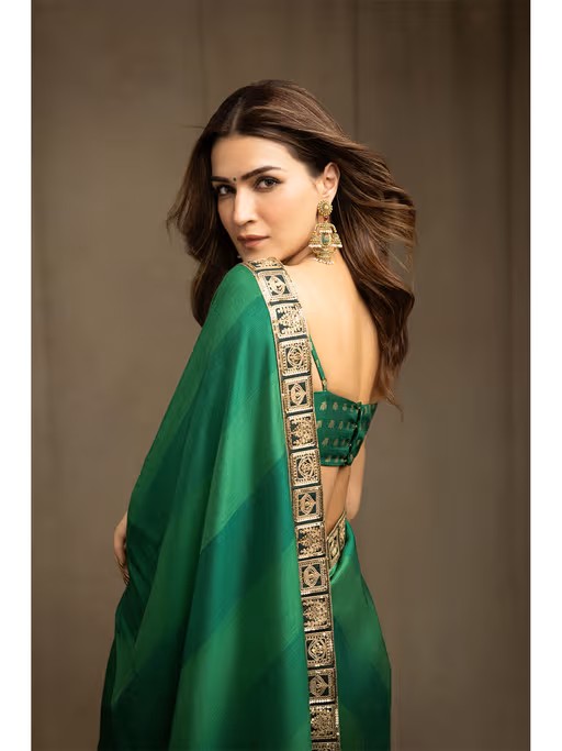 Saree Embroidered Borders. Embroidered Fish Motifs On Palla With Mystic Foil On Vertical Stripes All Over. Blouse Piece Comes With A Foil Printed Blouse Piece