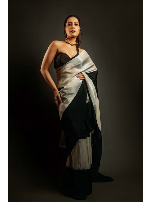 Channel your inner diva with this multi-color saree from Masumi Mewawalla. Crafted from tissue, this saree features an exquisite colorblock design, paired with a lovely sleeveless blouse. Style it with a pair of heels and diamond earrings for an elegant and soft look.