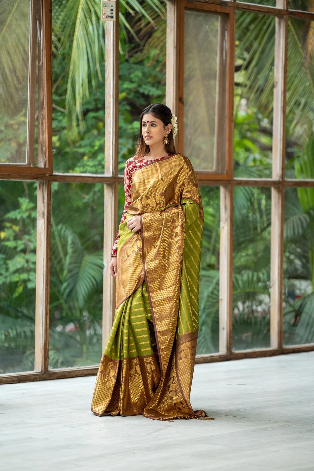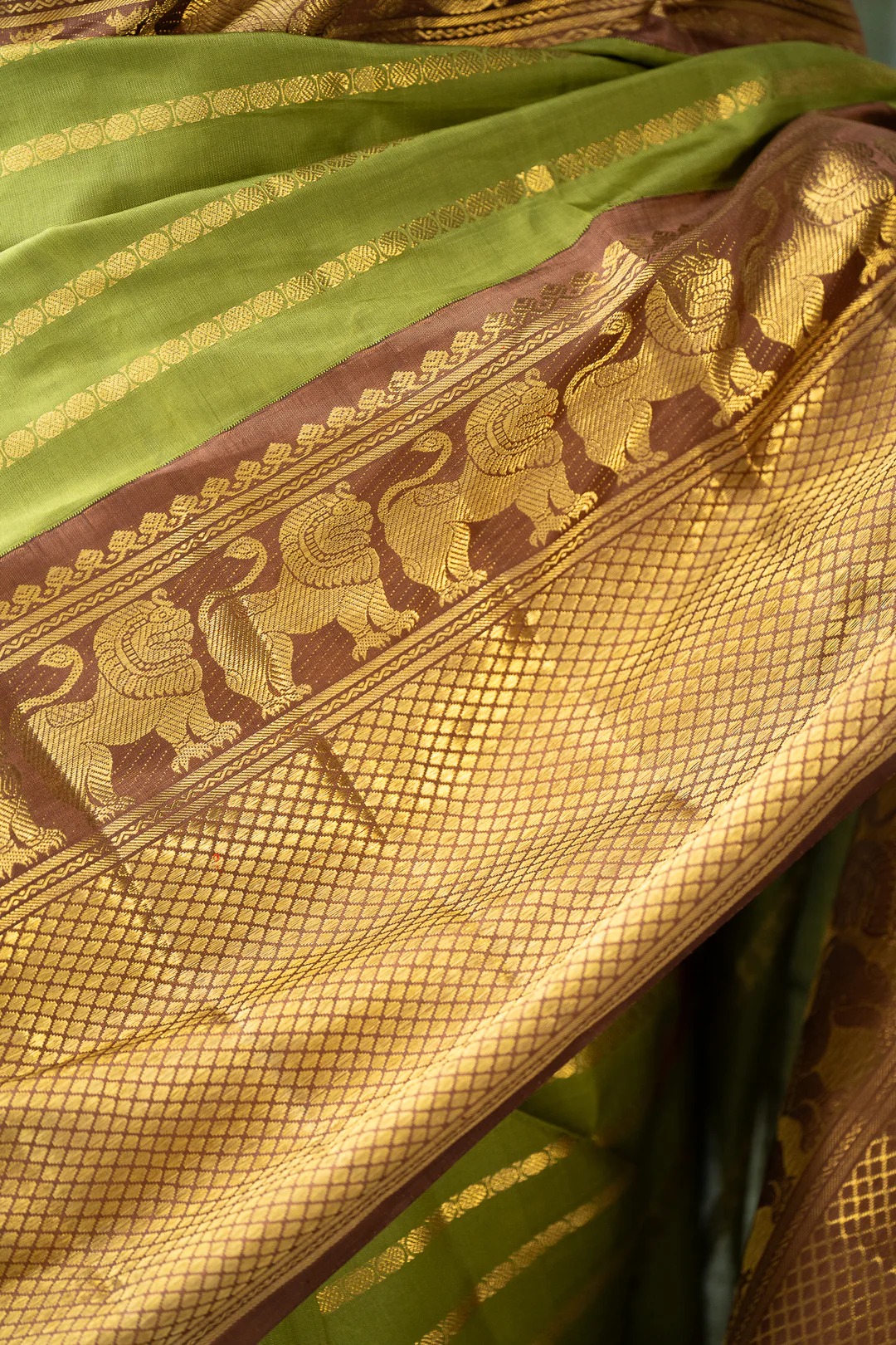 Envy Green Zari Stripes Pure Kanchipuram Silk Saree