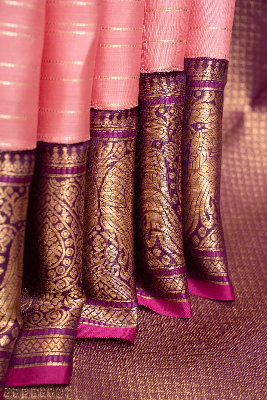 Flamingo Pink Veldhari Stripes Pure Kanchipuram Silk Saree