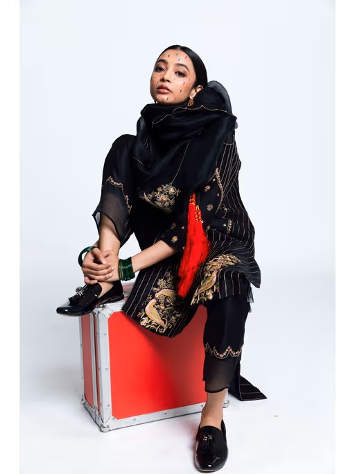 Elevate your ethnic wear wardrobe with Label Earthen black kurta pant dupatta set. It features embroidered pattern with three fourth sleeves, round neck with straight, mid waist bottom style . It is crafted from finest material. This outfit is perfect for special occasion. Add trendy footwear to complete the look.