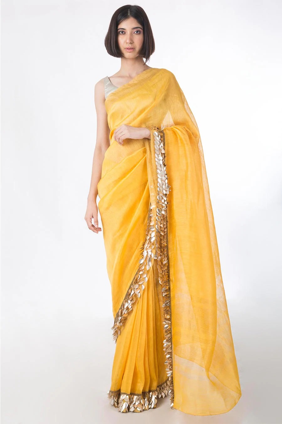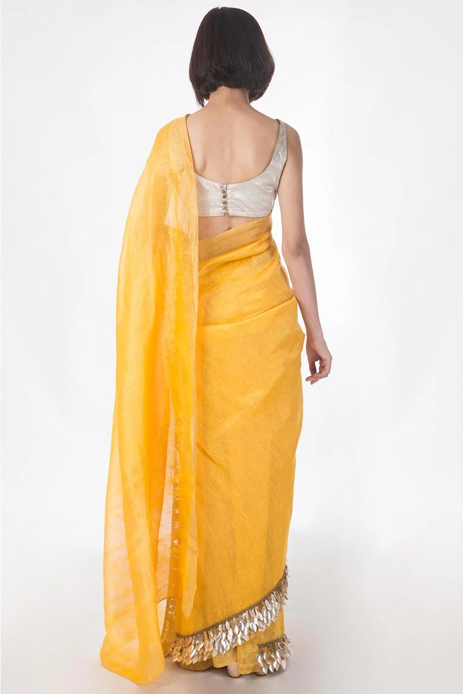 • The golden border is accentuated with tonal golden mettalic hand embroidery