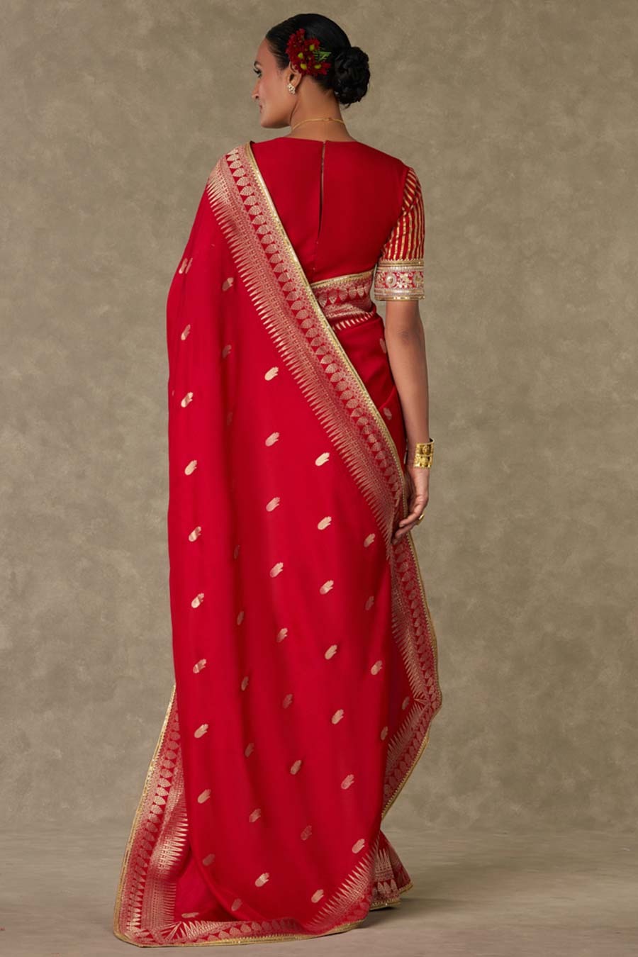• Embellished with embroidered border and gota silai