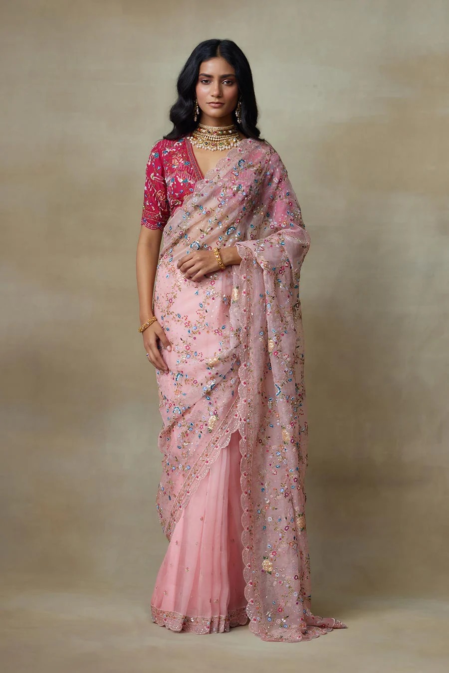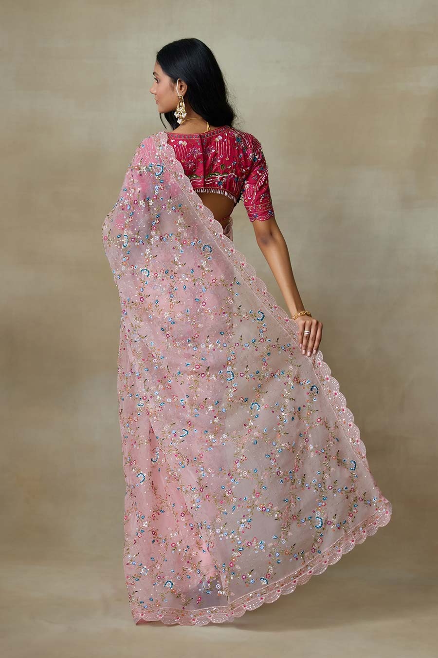 • Paired with a queen pink embroidered blouse