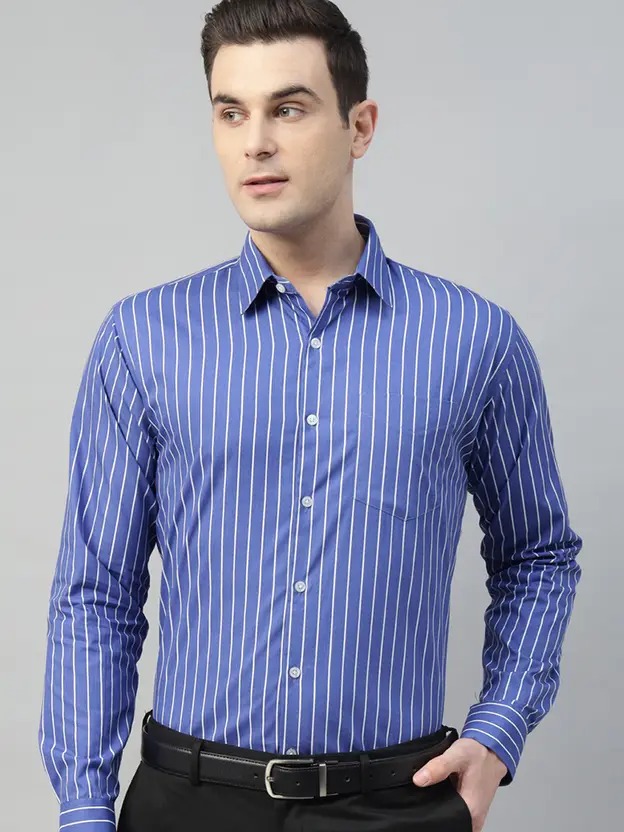 Men Slim Fit Striped Spread Collar Formal Shirt