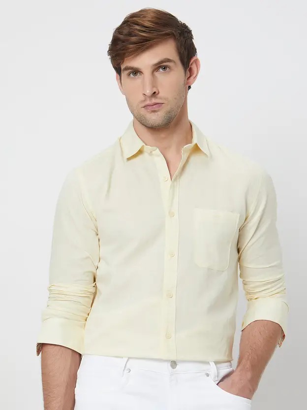 Men Slim Fit Solid Spread Collar Formal Shirt