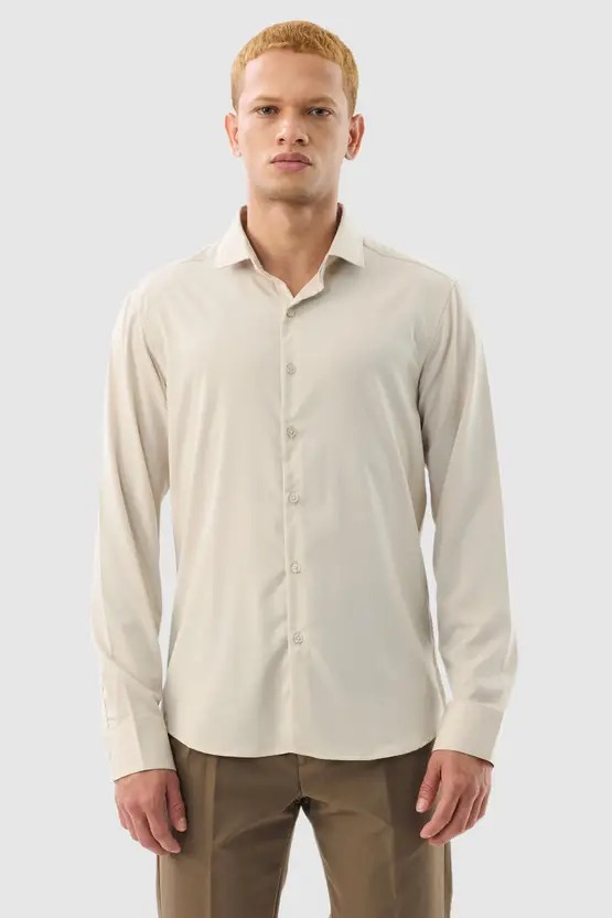 Men Slim Fit Solid Spread Collar Formal Shirt