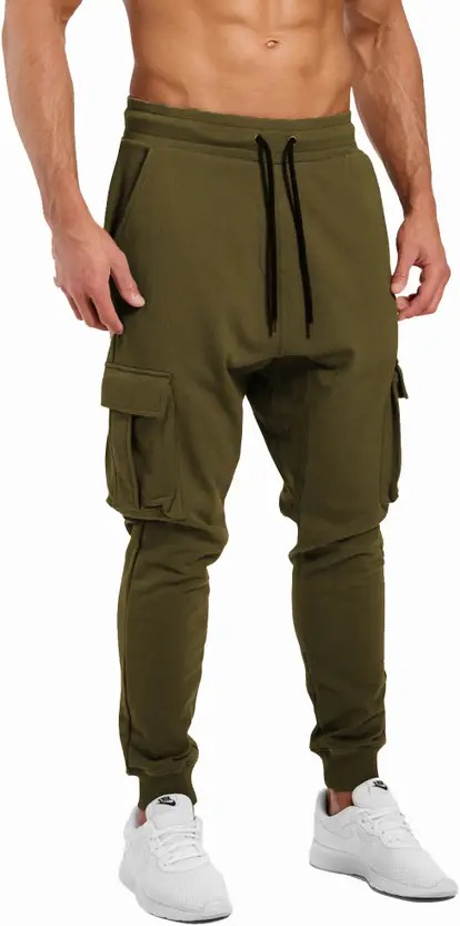 Men Solid Dark Green Track Pants