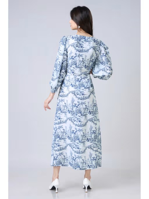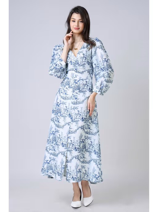 nduge in comfort and style with this blue dress from Neofaa. Made from high-quality georgette, it features pull on closure and floral pattern along with full sleeves & v-neck design. Pair it with heels and minimal jewellery to complete your ensemble.