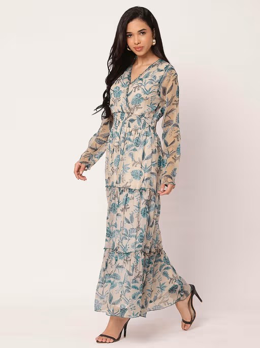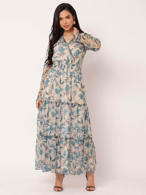 Enhance your style this season with this Moomaya Women Blue Floral Maxi Dress. Crafted from breathable fabric, it features an elegant design and offers exceptional comfort. Pair it with heels and minimal jewelry for a chic appearance.