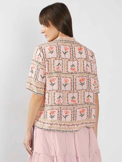 Effortlessly Chic, This Floral-Printed Shirt Features A Classic Notched Collar, A Front Button-Down Placket, and Breezy 3/4 Sleeves. Designed In A Relaxed Fit That Falls Below The Waist, It's Perfect for All-Day Comfort with A Touch Of Elegance.