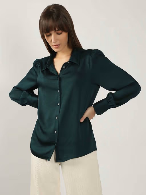 Effortlessly Chic and Easy To Style, This Green Regular-Fit Shirt From Vero Moda Features A Classic Collar, Front Button-Down Placket, and Full Sleeves with Gathered Cuffs. Designed To Fall Over The Hip, It's A Versatile Wardrobe Staple for Any Occasion.