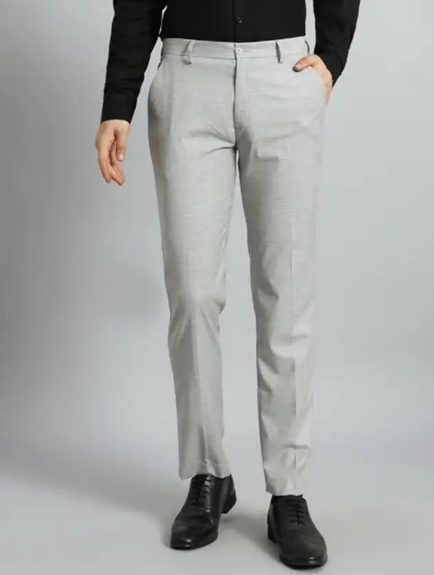 Men Regular Fit Grey Viscose Rayon Trousers