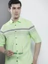 Men Regular Fit Striped Cut Away Collar Casual Shirt