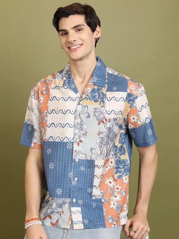 Men Regular Fit Printed Lapel Collar Casual Shirt