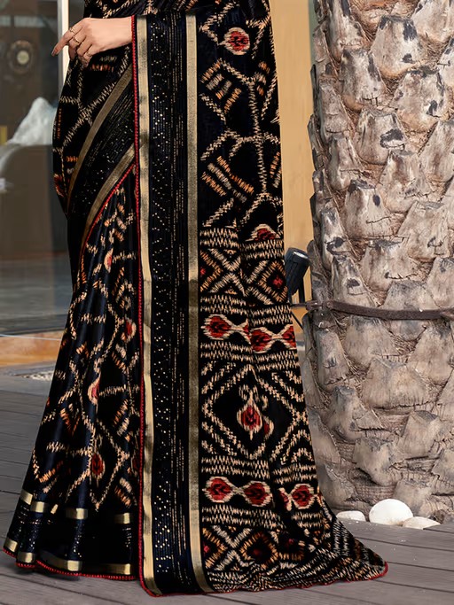 Black Cotton Ikkat Zari Bordered Printed Saree Cotton fibers are natural hollow fibers; they are soft, cool, known as breathable fibers and absorbent